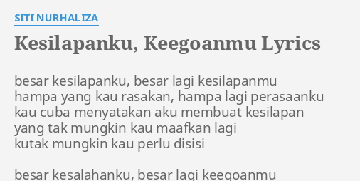 Siti Nurhaliza Kesilapanku Keegoanmu Official Lyric Video Youtube